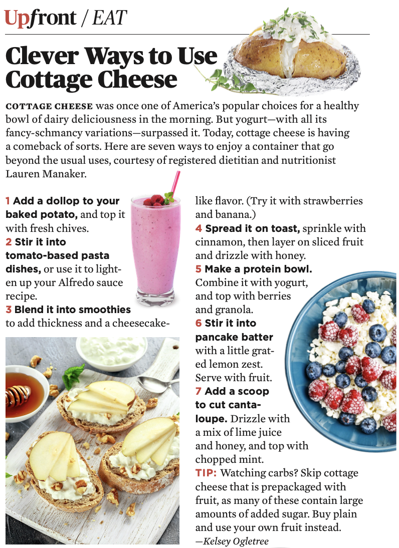 Cottage cheese is having a comeback of sorts. Here are seven ways to enjoy a container that go beyond the usual uses, courtesy of registered dietitian Lauren Manaker.